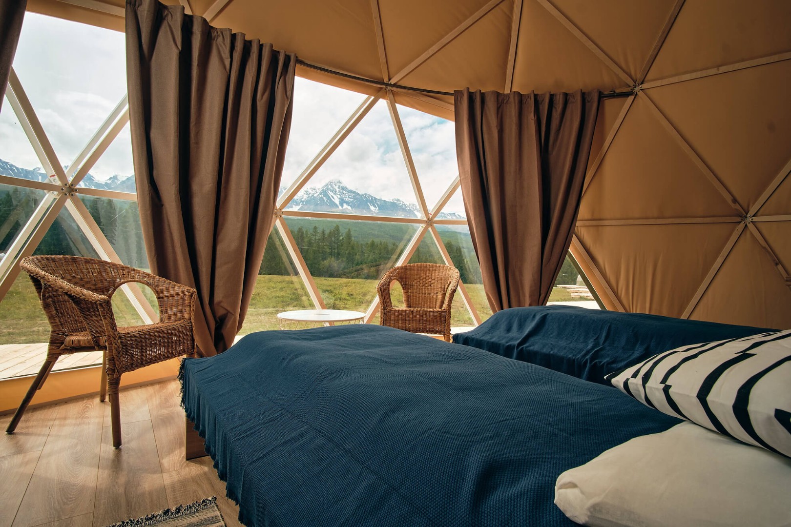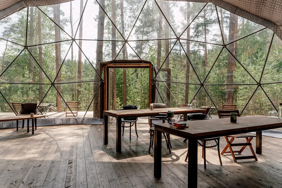 За счёт своей формы, геокупол имеет неповторимую, уютную атмосферу. Площадь сферы позволяет разместить в ней все удобства для комфортного проживания, а также для проведения различных мероприятий.