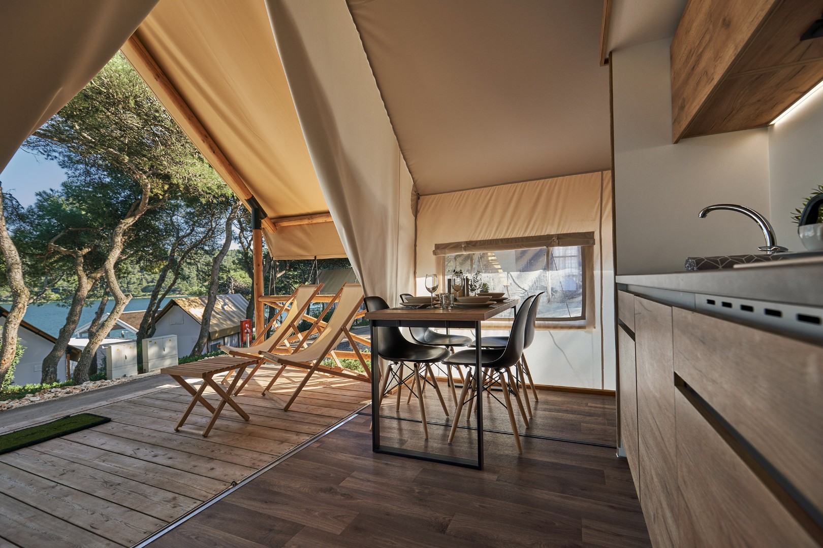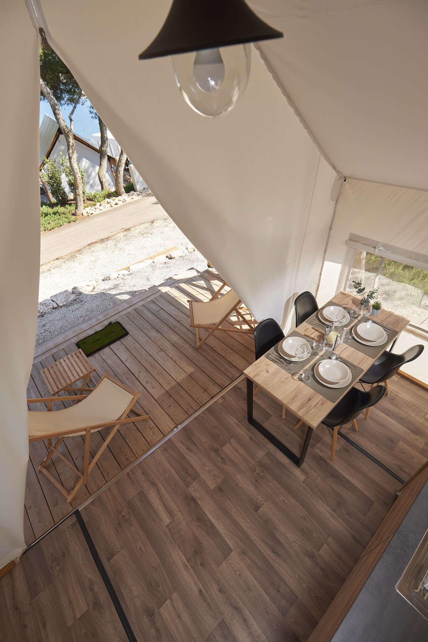 Зону жилой палатки можно обустроить всем необходимым для максимального комфорта. Наши сафари-тенты разработаны с учётом удобства и практичности, а разнообразие габаритов жилой палатки, дают возможность для широкого выбора планировок и опций.