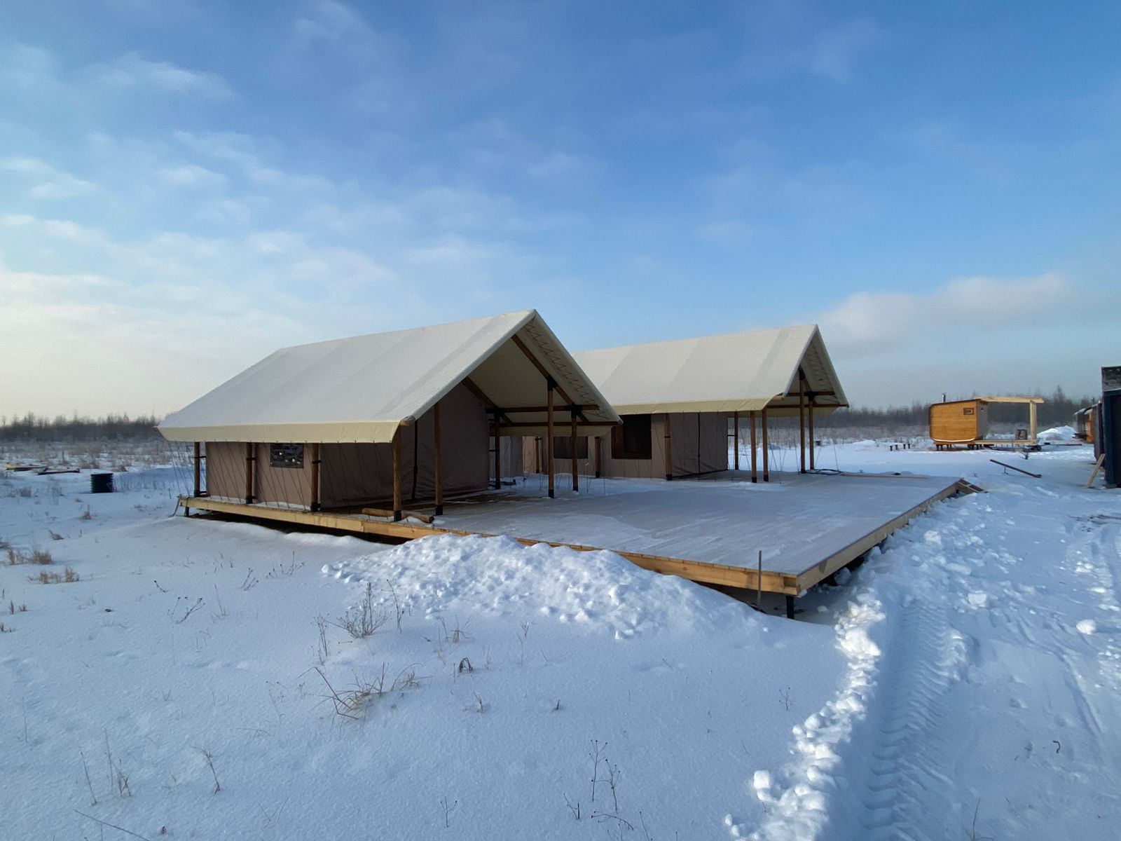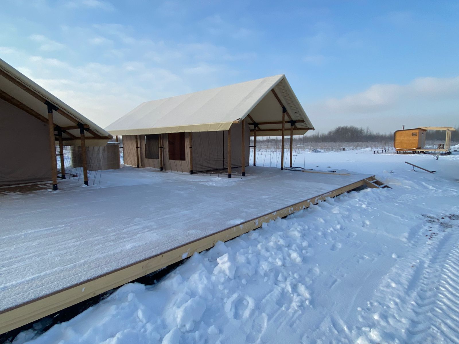 Компания Ecocamp вышла на международный рынок! Теперь у нас есть представитель и выставочная площадка в России, г. Санкт - Петербург. На площадке представлены модели сафари тента «Кочевник» с каркасом 6х4, палаткой 4х4 и сафари тент с жилой палаткой 6х4м с крытой террасой, увеличенной высотой каркаса, до 3,5м и панорамными окнами.